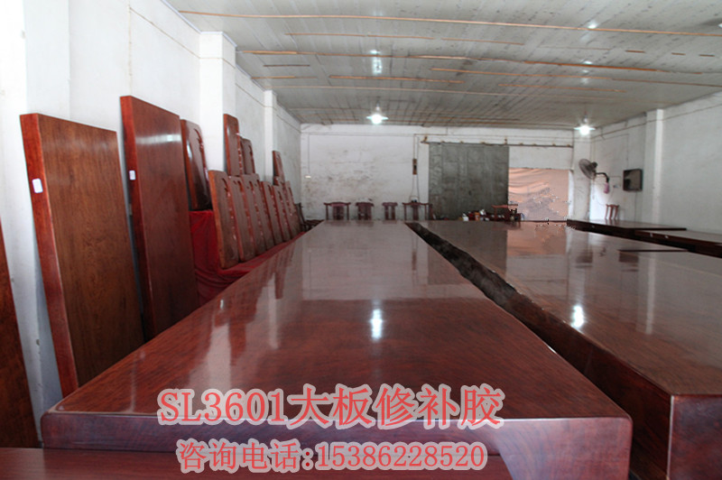 因?yàn)槟静纳厦嬗械目p隙較小,所以要選用滲透力好的膠來(lái)修補(bǔ)它,但是現(xiàn)在有很多大板加工廠用的是502類似的水性膠,這種膠雖然固化時(shí)間短,但是耐老化情況不好,對(duì)于一顆成長(zhǎng)了上百年歷史的原木來(lái)說(shuō)要體現(xiàn)它的價(jià)值當(dāng)然需要每一件都用好的材料來(lái)輔助它加工成為精品、藝術(shù)品,所以強(qiáng)烈給大家推薦