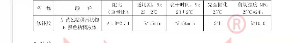 2 配膠 按規定進(jìn)行配制,將膠置于潔凈、干燥、無(wú)油的容器中,混合均勻至顏色一致。配膠不宜過(guò)多,做到隨配隨用。夏季一次配膠量不應超過(guò) 500 克。